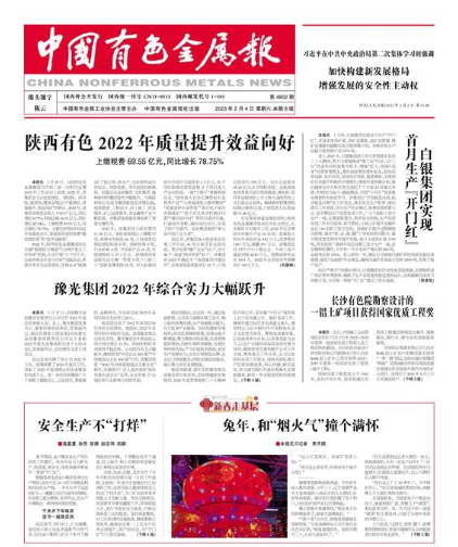 中國(guó)產(chǎn)業(yè)經(jīng)濟(jì)信息網(wǎng)、中國(guó)有色金屬報(bào):陜西有色2022年質(zhì)量提升效益向好 上繳稅費(fèi)69.55億元,同比增長(zhǎng)78.75%