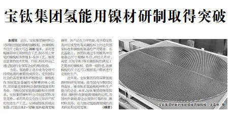 近年來,寶鈦集團持續(xù)深耕氫能源材料研發(fā)領域,成為國內少數(shù)同時具備鈦、鎳雙體系氫能極板材料生產(chǎn)能力的企業(yè)。未來,寶鈦集團將繼續(xù)探索鈦、鎳材料在新能源領域的運用,為國內外新能源企業(yè)提供可靠的鈦、鎳材料支持,有力推動氫能源領域的技術研究和應用發(fā)展。