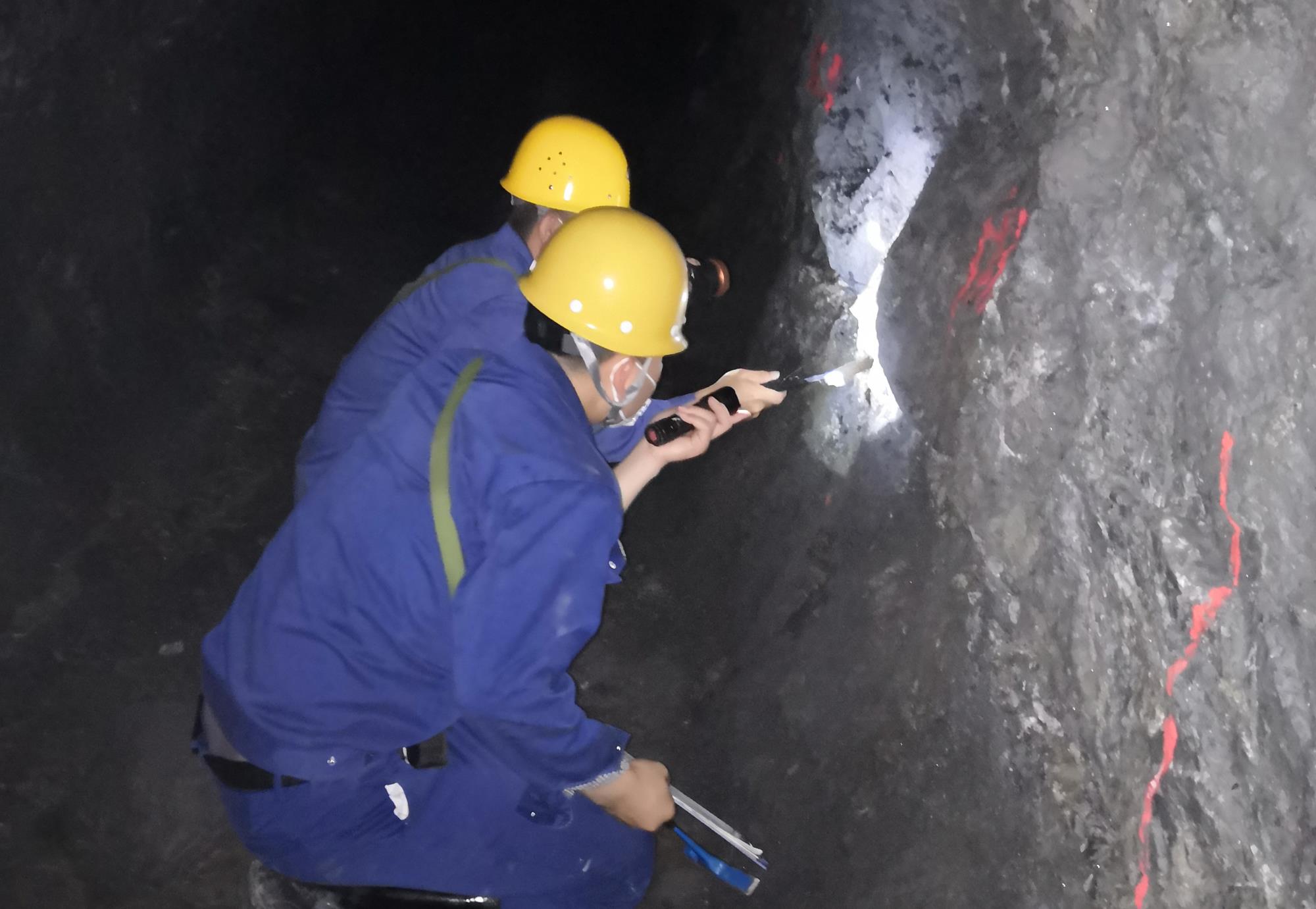 ▲寶雞鳳縣東塘子鉛鋅礦床86線以西詳查項目組人員開展坑道調(diào)研