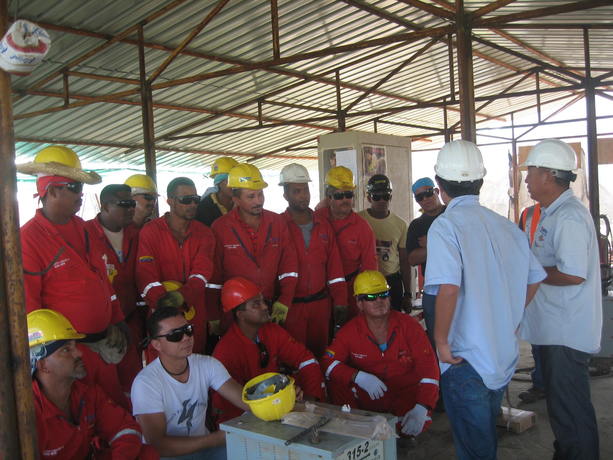 西安勘察設(shè)計(jì)院承接的海外工程委內(nèi)瑞拉中央電廠巖土施工項(xiàng)目,對(duì)外籍員工進(jìn)行班前安全思想教育。