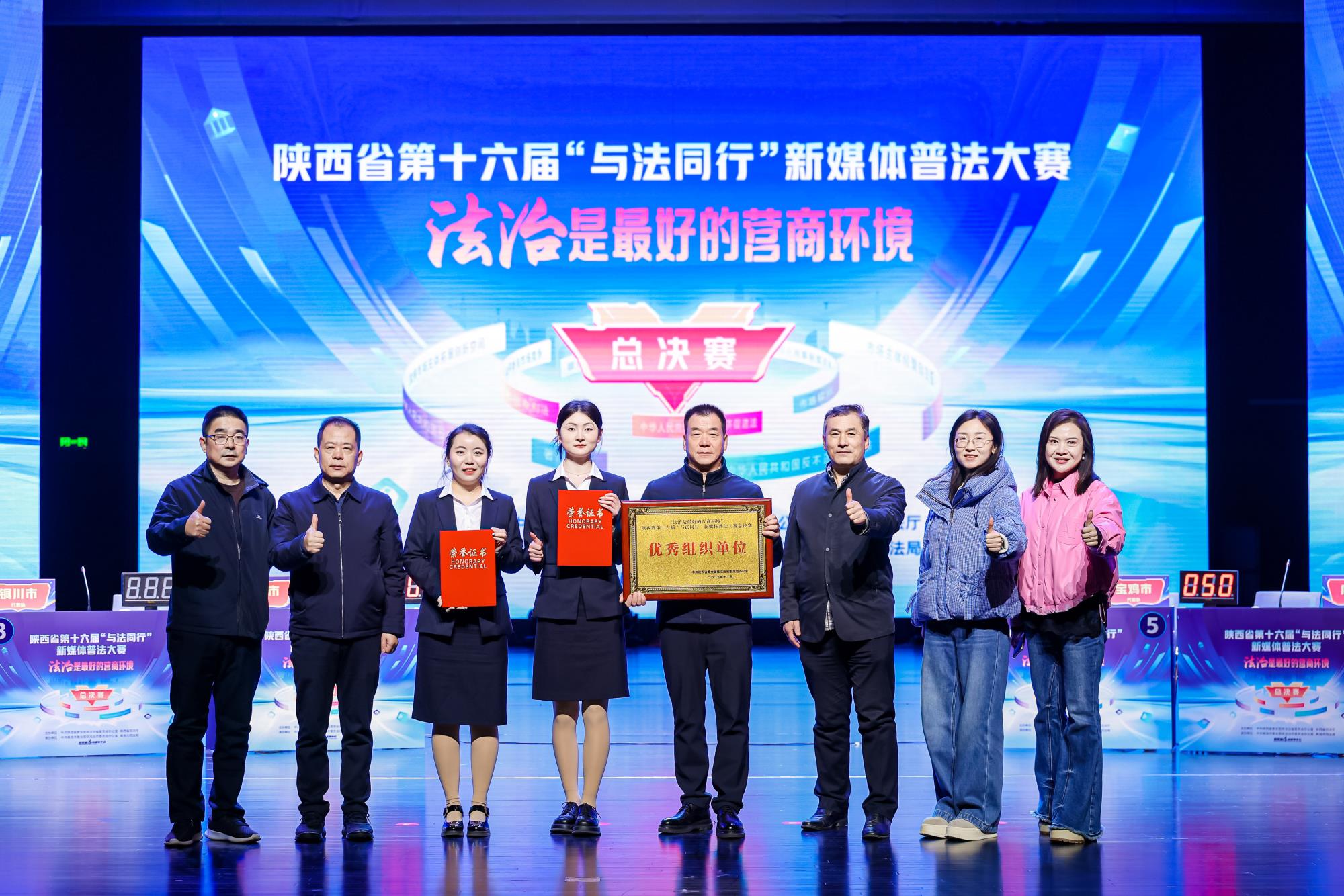 12月3日,陜西省第十六屆“與法同行”新媒體普法大賽總決賽在商洛市圓滿落幕,來自全省各地市及楊凌示范區(qū)的11支代表隊(duì)展開巔峰對(duì)決。代表寶雞市參賽的四方金礦選手高怡君、劉萍,憑借扎實(shí)的法律功底、默契配合與出色的臨場發(fā)揮,一路過關(guān)斬將,勇奪大賽總冠軍。