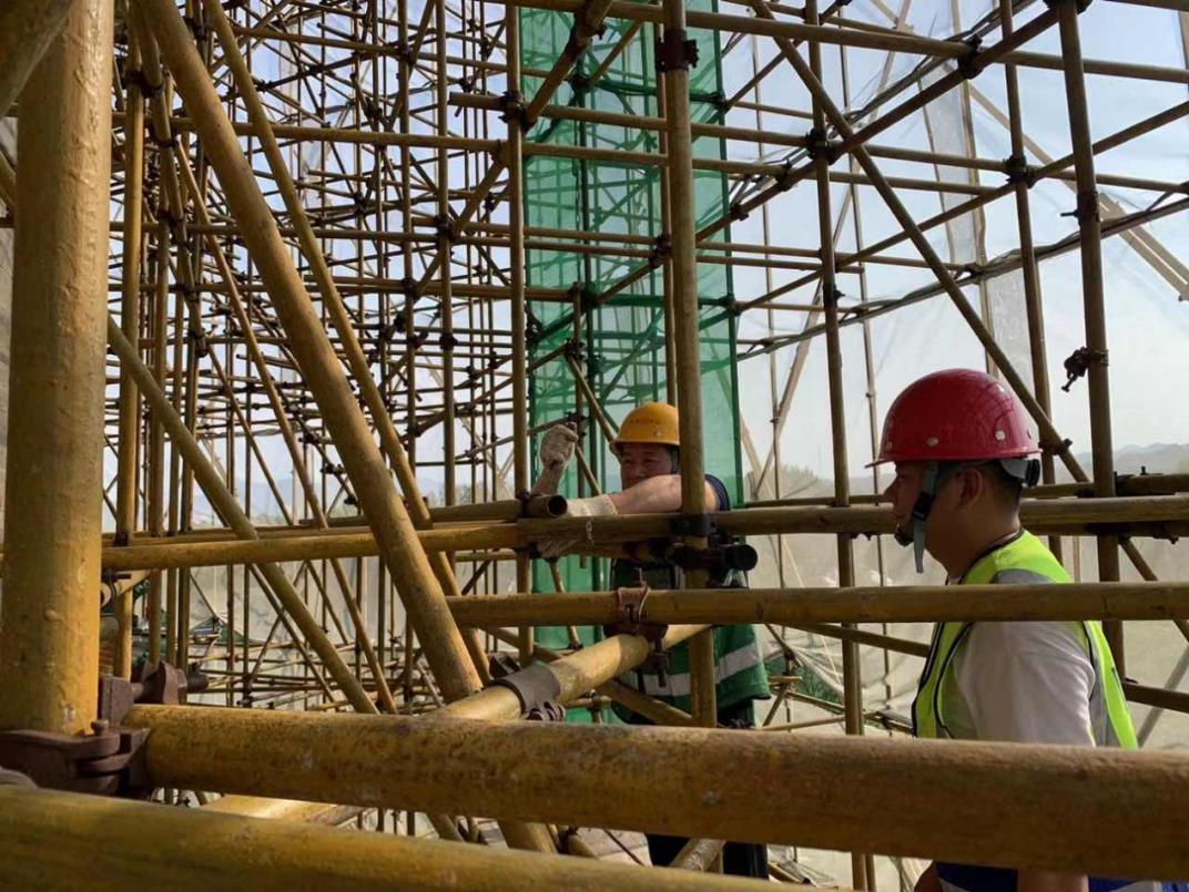 一次,因?yàn)椴榭磮D紙不細(xì)致,陳浩負(fù)責(zé)的塔體定位出現(xiàn)偏差,導(dǎo)致后續(xù)工序無(wú)法完美對(duì)接,整個(gè)團(tuán)隊(duì)為此通宵校準(zhǔn)復(fù)位。那個(gè)夜晚讓他刻骨銘心:“文保施工沒(méi)有‘重來(lái)一次’的機(jī)會(huì),任何數(shù)據(jù)上的‘差不多’,在實(shí)際中就會(huì)‘差很多’?!弊源?,極致嚴(yán)謹(jǐn)成為他的習(xí)慣。某次檢查中發(fā)現(xiàn)一根立桿偏差2厘米,即使面臨工期壓力,他仍然堅(jiān)持重搭,確保每個(gè)構(gòu)件精準(zhǔn)就位。