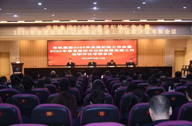 3月10日,寶鈦集團2026年黨建紀檢工作會暨2025年度黨組織書記抓基層黨建工作述職評議考核會在寶鈦賓館七樓學術(shù)報告廳召開。寶鈦集團黨委書記、董事長王儉出席會議并講話,寶鈦集團黨委副書記、總經(jīng)理陳戰(zhàn)乾主持會議。